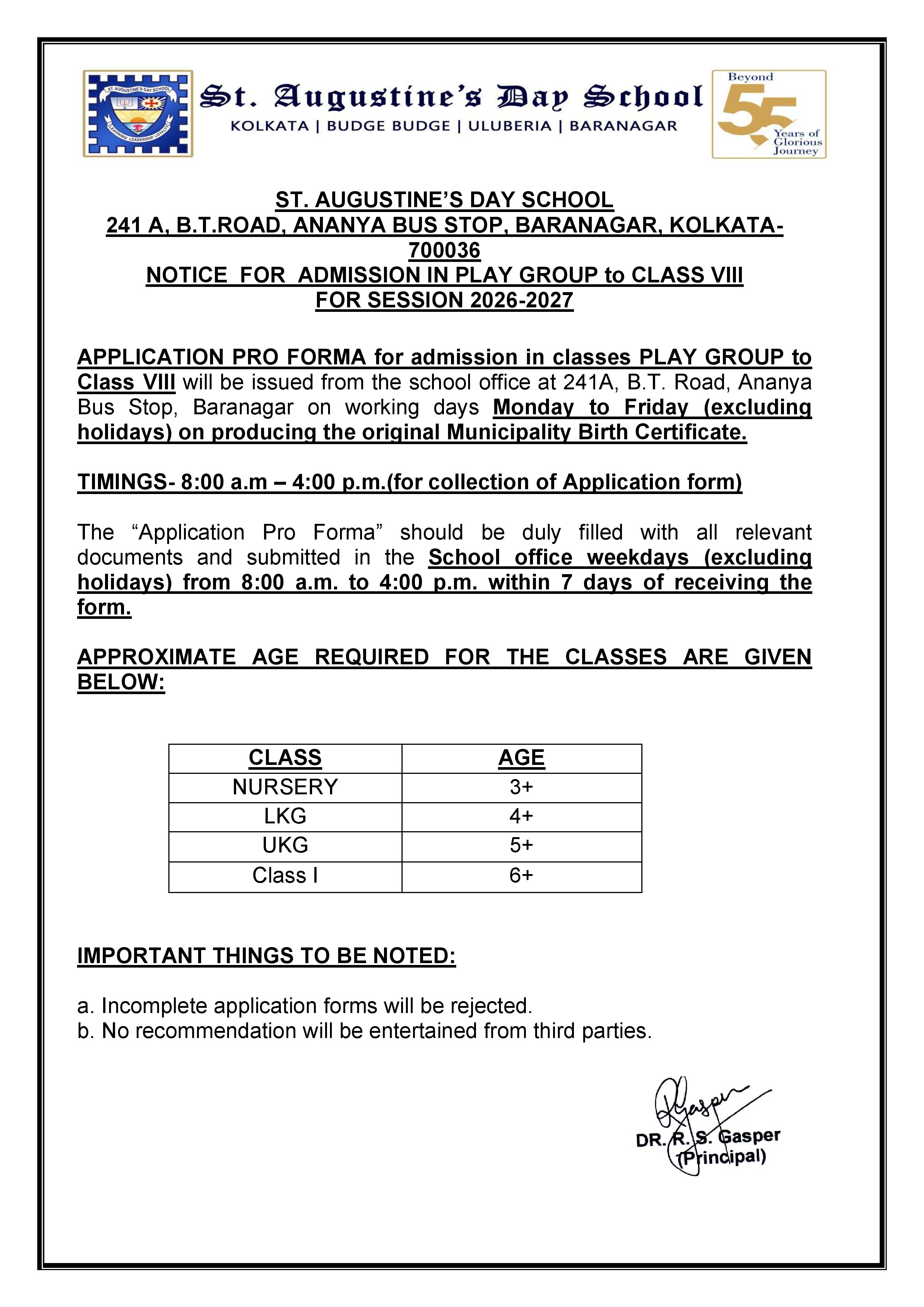 Thank you for being a part of the St. Augustine's Day School Baranagar family!